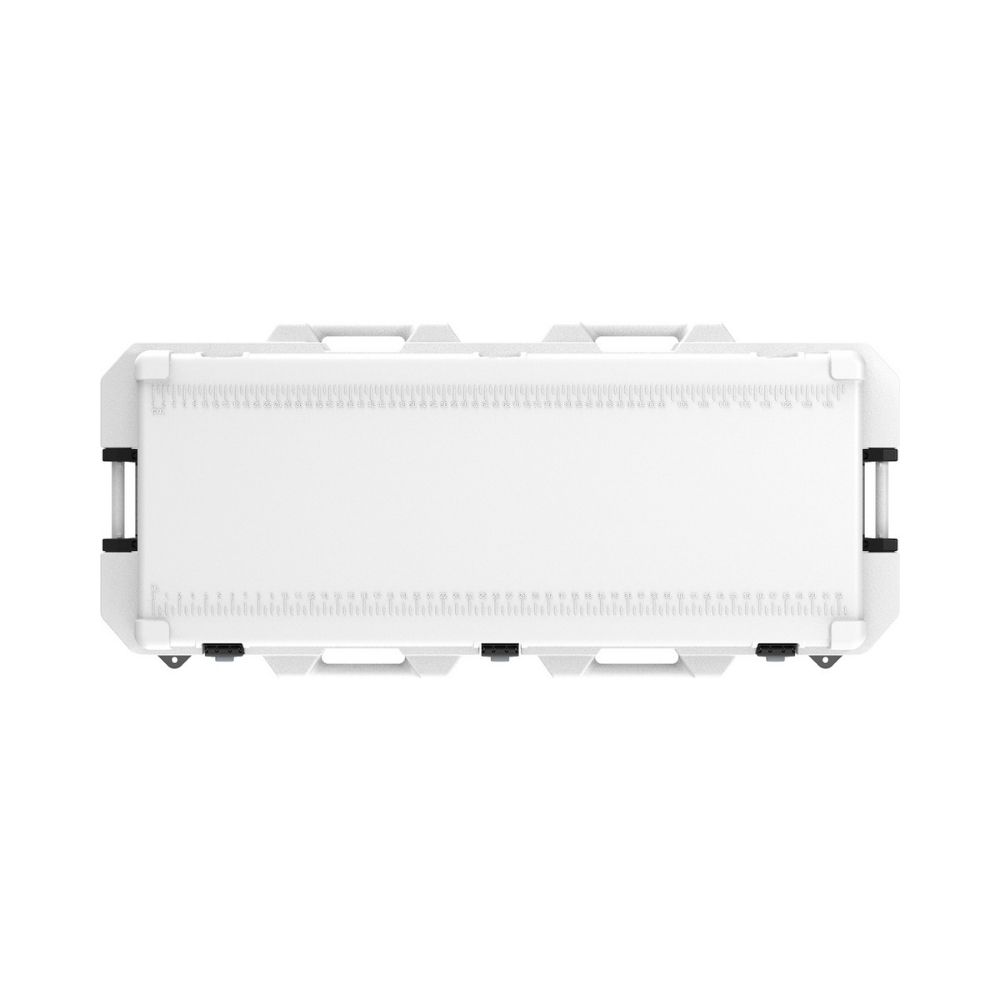 Regla para medir peces integrada en la tapa.