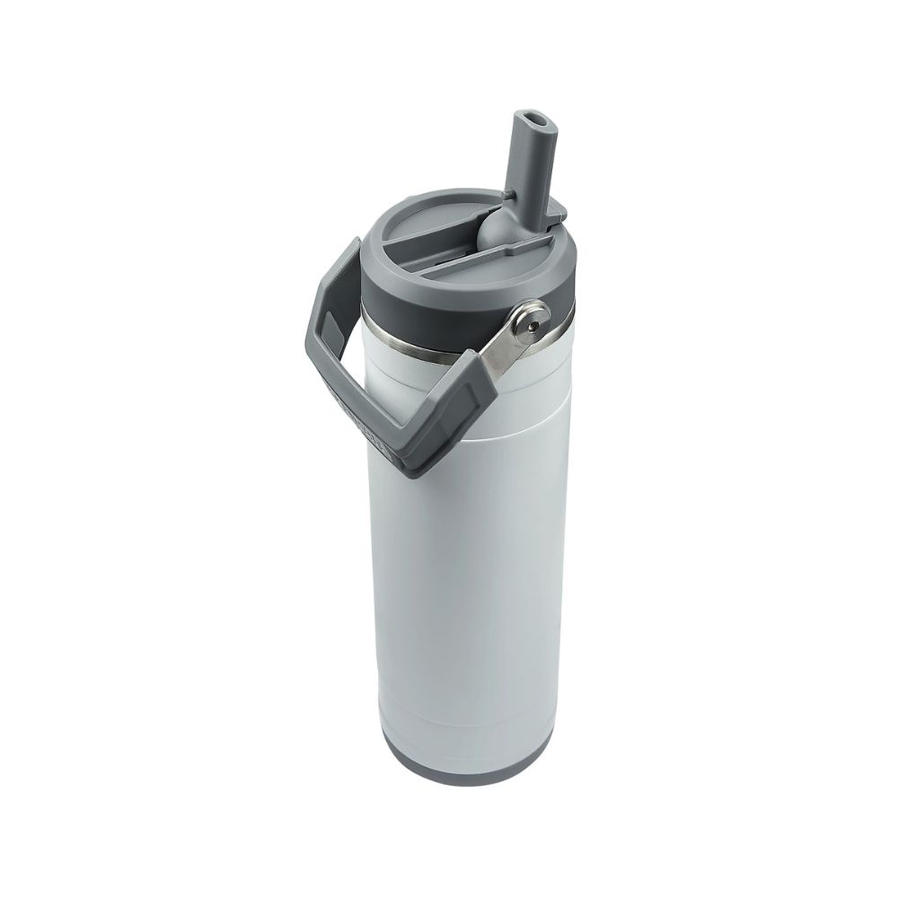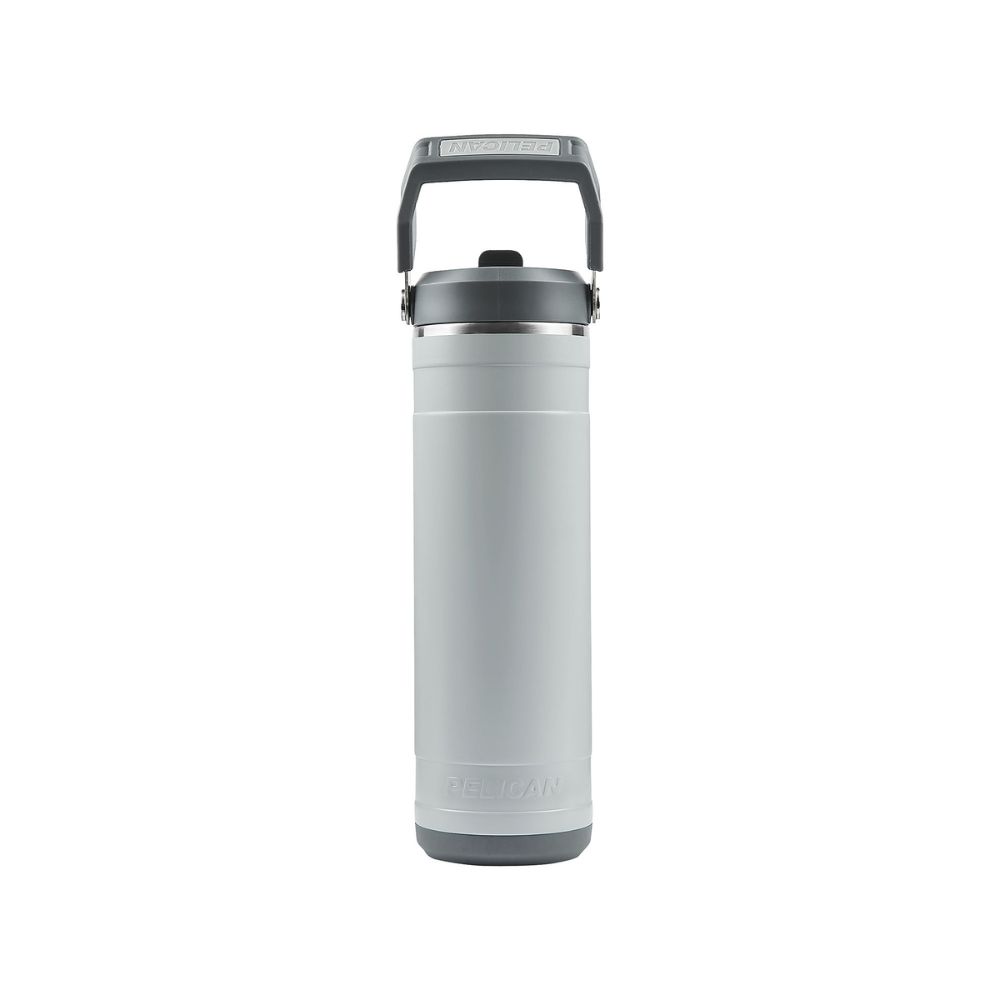 La Pelican Pacific™ cuenta con una tapa de rosca a prueba de fugas con boquilla tipo sorbete, lo que permite beber sin necesidad de desenroscar la tapa ni preocuparse por derrames. Su asa giratoria ergonómica facilita el transporte, mientras que la base de silicona removible ofrece mayor estabilidad y protección contra impactos y rayaduras.