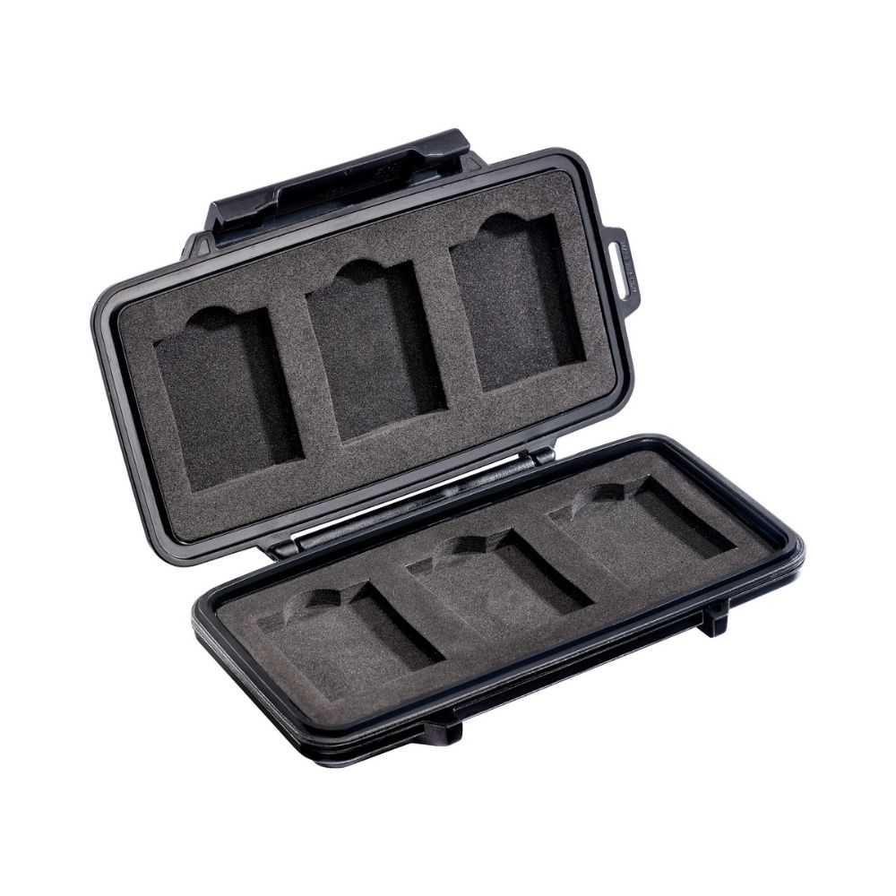 El Micro Case para Tarjetas de Memoria Pelican™ 0965 CFexpress / XQD es un almacenamiento seguro para tus tarjetas de memoria (almacena hasta seis tarjetas CFexpress y/o XQD). Sus características incluyen un sello resistente al agua para proteger las tarjetas de daños por agua o humedad, además de un forro interior que absorbe impactos y un exterior resistente para proteger contra los elementos.