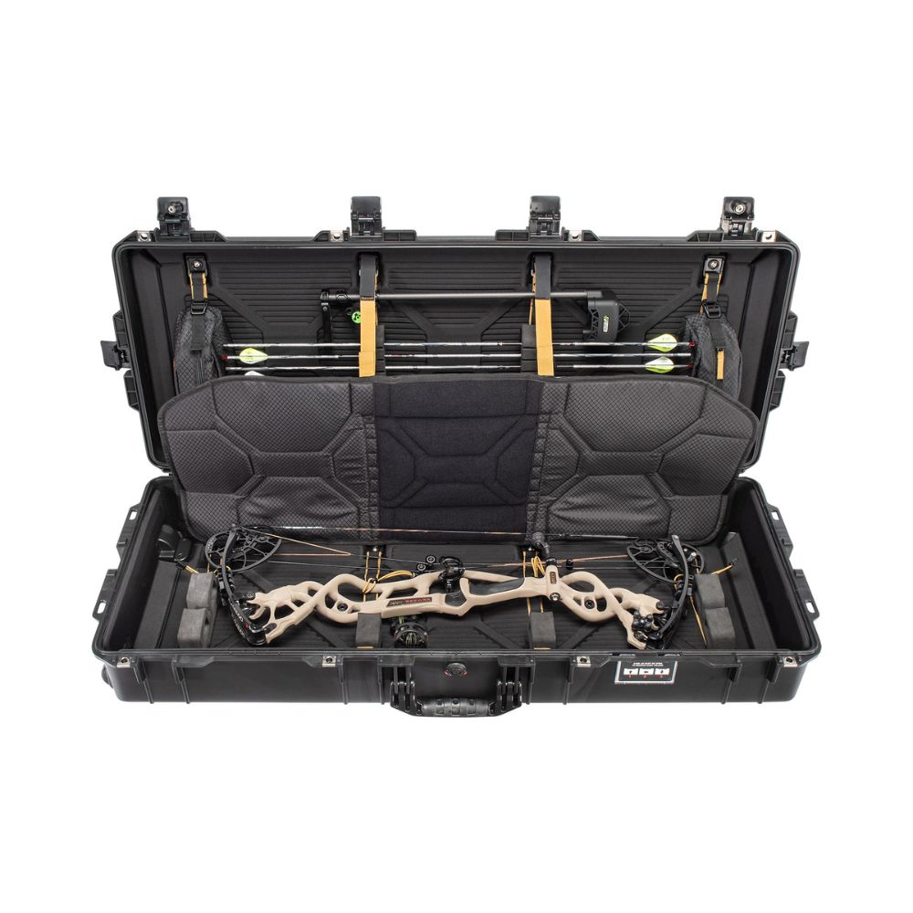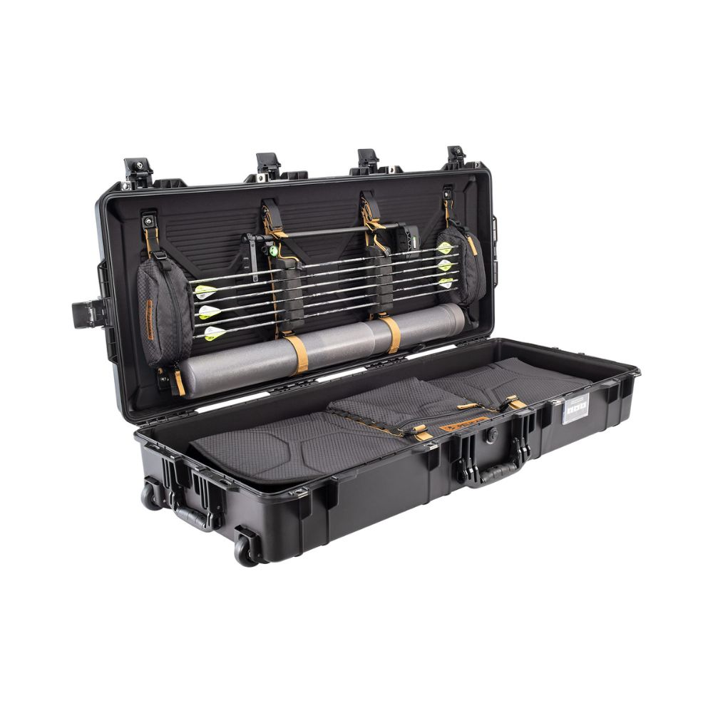 El nuevo Pelican™ Air 1745 Bow Case es la tan esperada solución para arcos del líder en protección premium. Este estuche fue diseñado cuidadosamente para satisfacer las necesidades únicas de los arqueros más exigentes. Diseñado bajo la línea Pelican™ Air, es hasta un 40% más liviano que la competencia, minimizando los costos adicionales de viaje. El exterior cuenta con seis pestillos resistentes de botón (incluyendo dos aprobados por la TSA), 4 cerrojos de acero inoxidable y ruedas para facilitar el transporte. Los componentes interiores ofrecen almacenamiento modular, permitiendo una amplia variedad de configuraciones para tu arco y kit de accesorios.